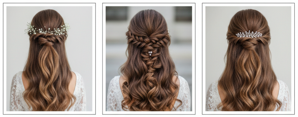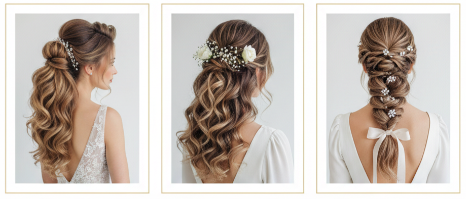 Key Takeaway: Half up half down hairstyles are timeless, versatile, and customizable. They work with all hair types and wedding styles, giving brides the ability to create an elegant, natural, and lasting look that perfectly complements their special day.