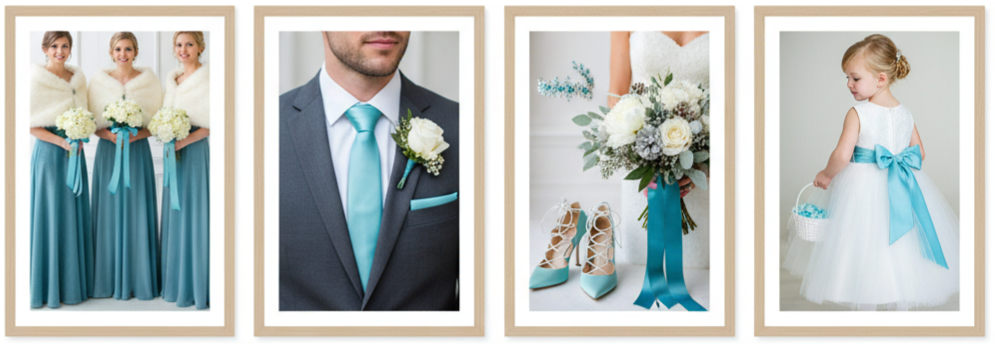 Brides can weave Tiffany Blue into their look through shoes, sashes, jewelry, or hairpieces. Even small touches work beautifully, especially when paired with a winter-inspired bouquet.