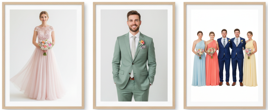 - Groom’s Attire: Suits in shades like sage green, beige, navy, cobalt, or even light linen for a breathable summer-friendly feel.