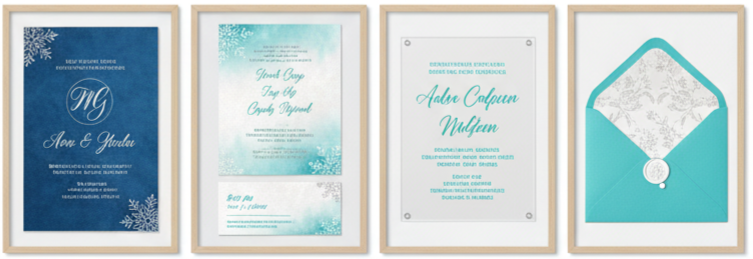 - Materials: Velvet gives the invitations a rich, warm feel. Shimmer paper adds a frosted glow perfect for the season. Clear acrylic invitations with blue lettering deliver a chic, modern look.
