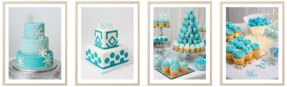 If you want something warmer, mixing gold into your palette balances the coolness of the blue. Gold-rimmed plates or golden lettering look stunning without overwhelming the winter theme.