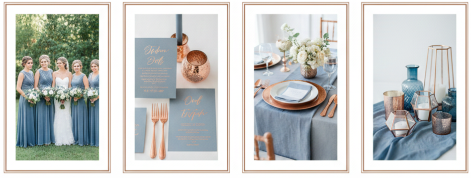 | Dusty Blue & Copper | Modern charm | Minimal, Chic | Gallery, Loft |