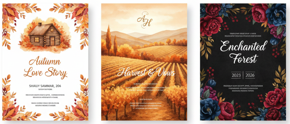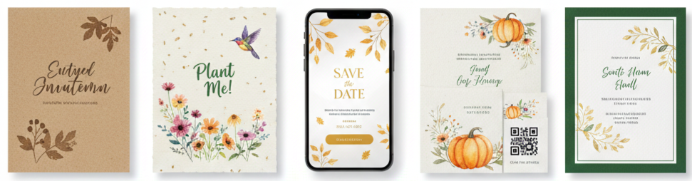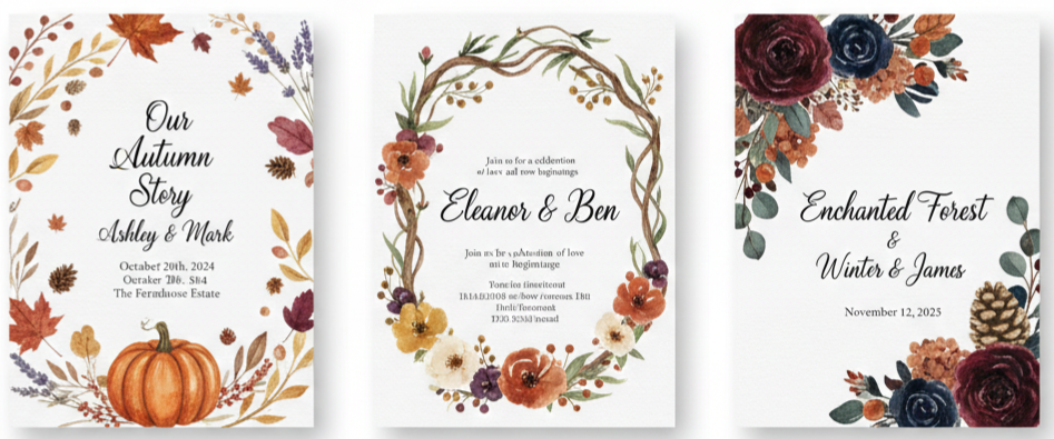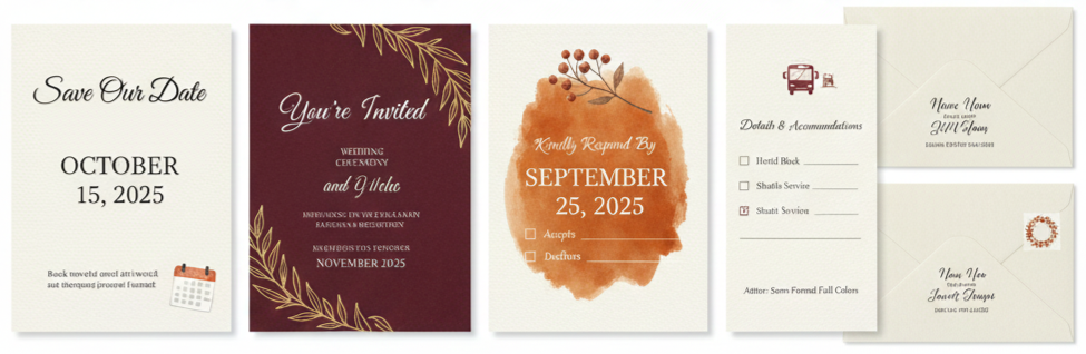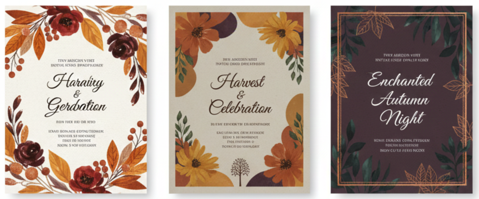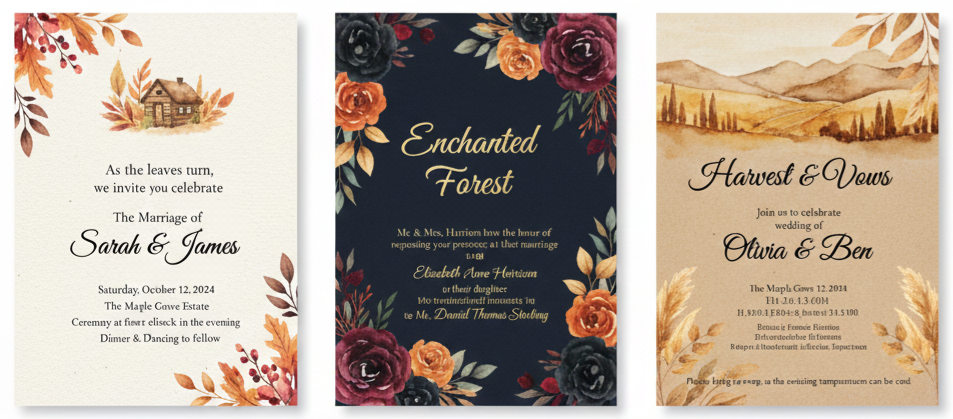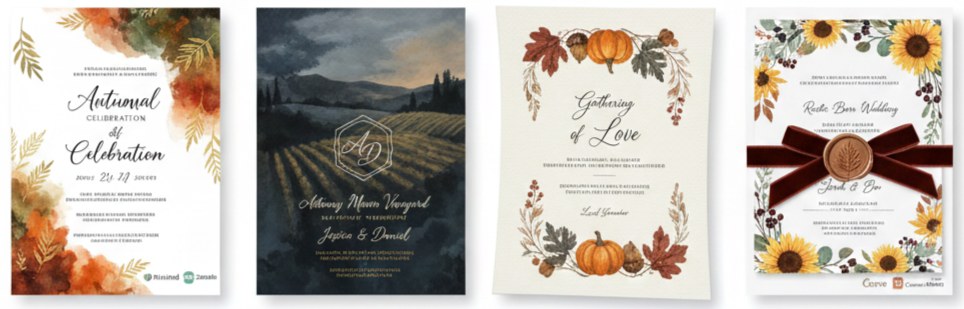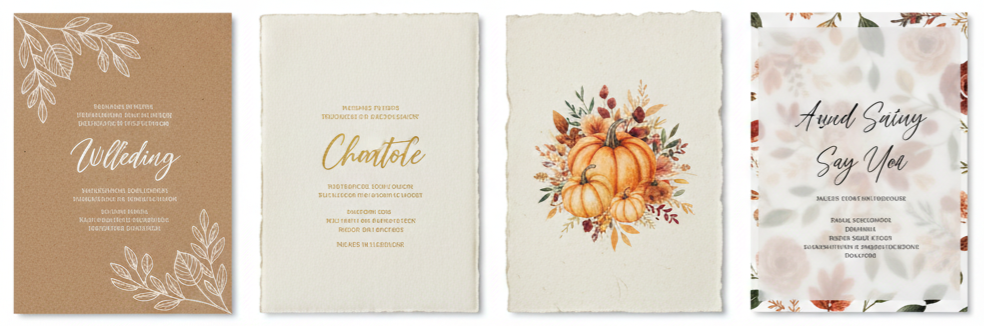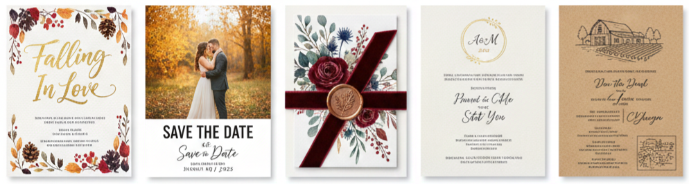 - Invitation Details: Pressed leaves or fall-themed motifs inside envelopes add a seasonal touch without changing the whole stationery set.