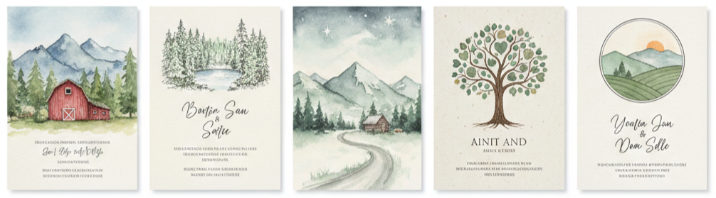 | Illustrated Scenery | Destination or Outdoor Venues | Artistic, Personal, Story-Driven |