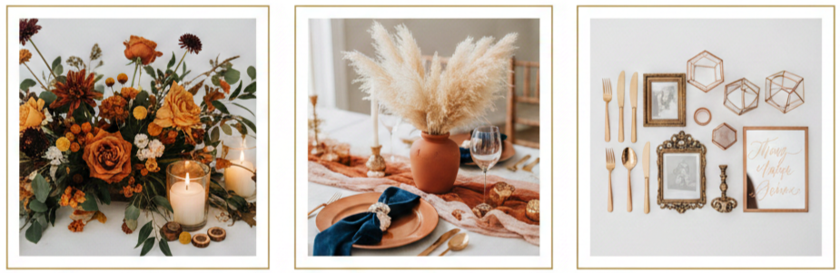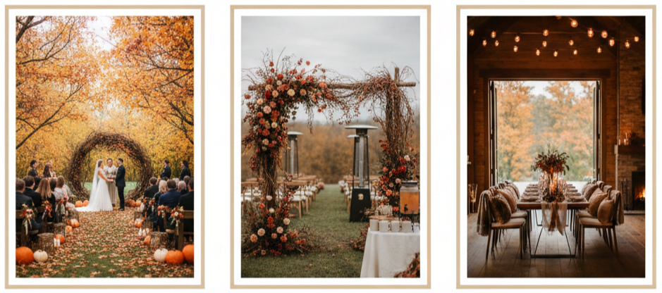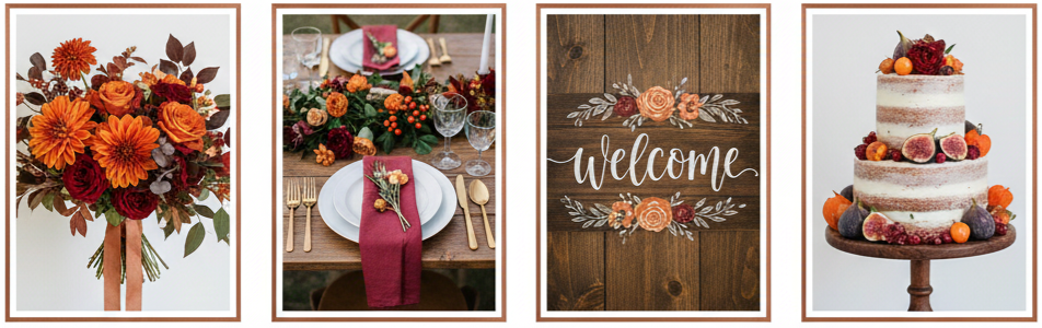 Key Takeaway: A cohesive fall wedding design comes from repeating a clear color palette, layering warm lighting, and using seasonal textures in a way that feels intentional and uncluttered.