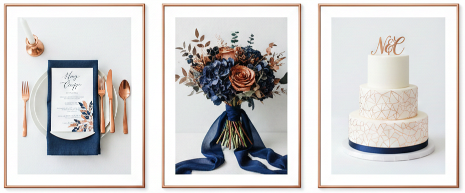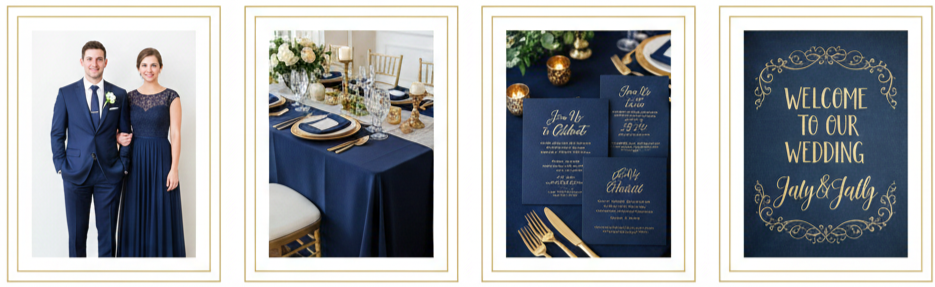 | Navy & Gold | Bold elegance | Formal, Classic | Hotel, Cathedral |