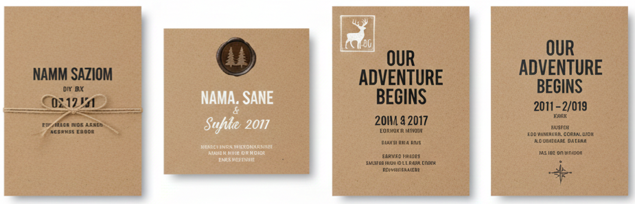 - Material Choices: Kraft cardstock, recycled paper, and matte finishes enhance the organic look. Glossy paper is usually avoided since it can take away from the natural feel.