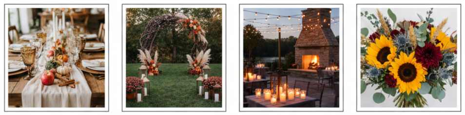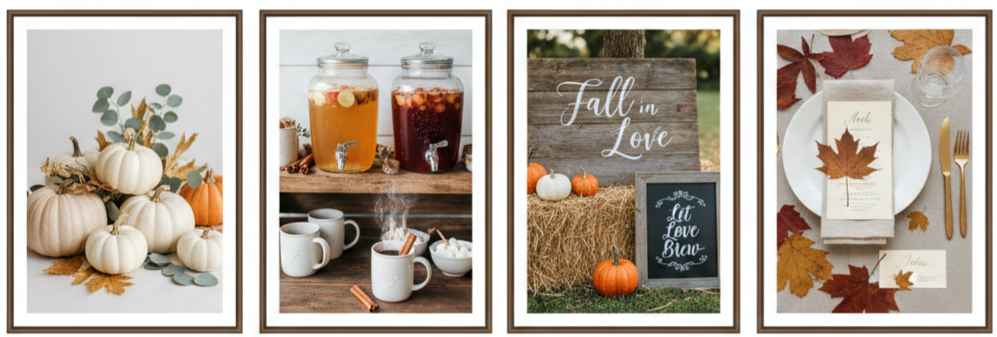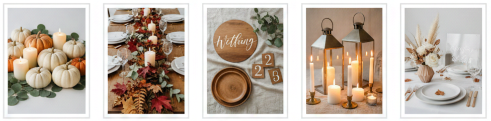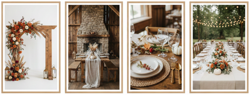 DIY decor works especially well in fall because the season provides so many natural materials that already look styled. We get the best results when DIY projects stay simple, repeatable, and aligned with the wedding’s overall look.