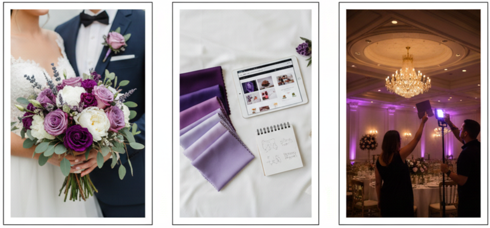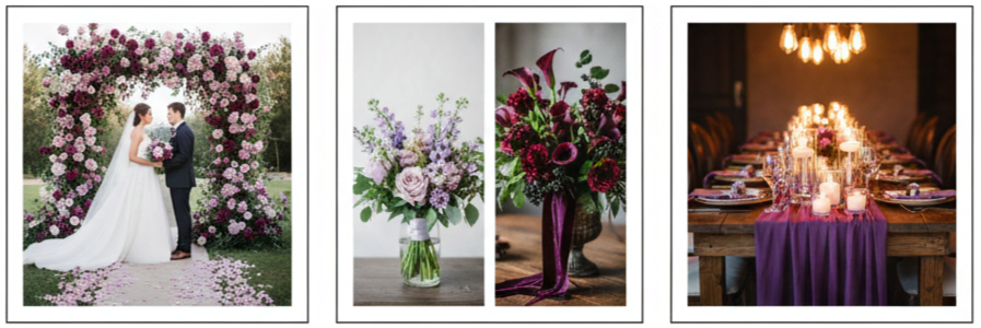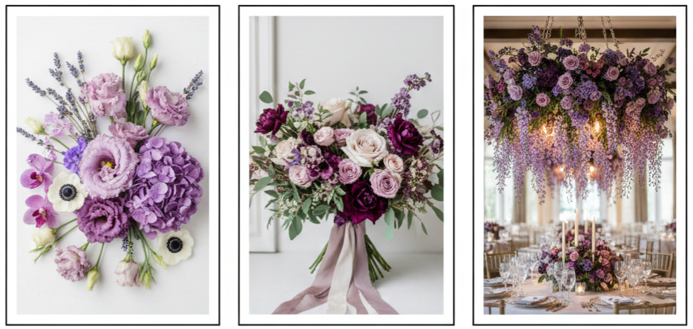 Florals should complement the palette rather than match it exactly. Slight variation adds depth and keeps arrangements looking natural.