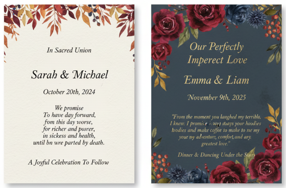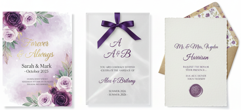 - Invitations and Stationery: Invitations introduce guests to your color scheme before the wedding day even begins. Use your palette through paper color, ink choice, envelope liners, or foil accents to set expectations early.