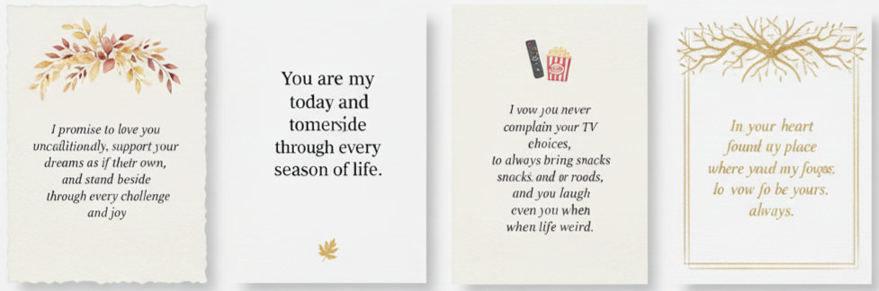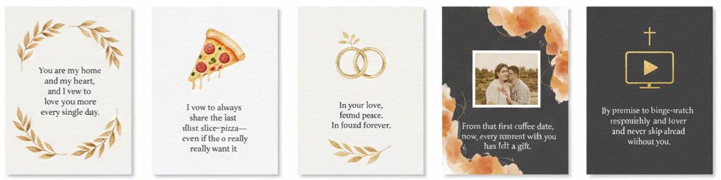 - Personalization: Add foil-stamped tags or custom labels with your names and wedding date.