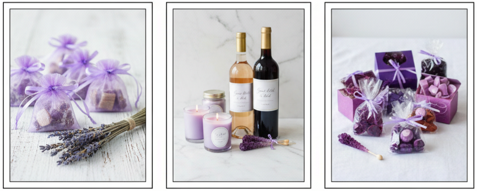 - Display setup: Arrange favors on a dedicated table with coordinating florals and a simple sign.
