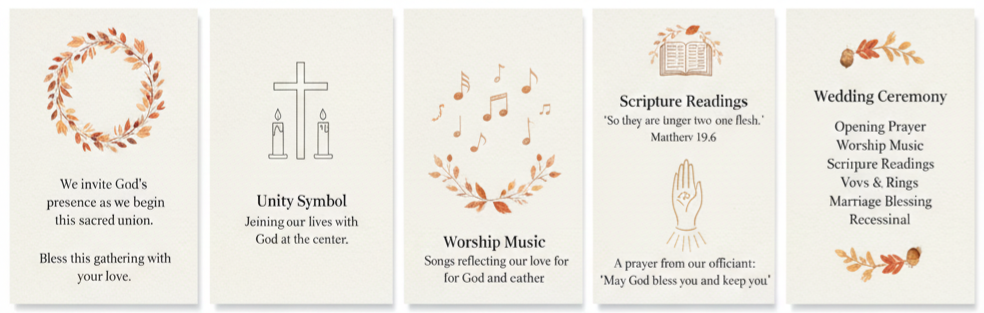 - Ceremony Décor: Arches, aisle markers, signage, and programs should align with your chosen colors. Even small details, when coordinated, contribute to a cohesive overall look.