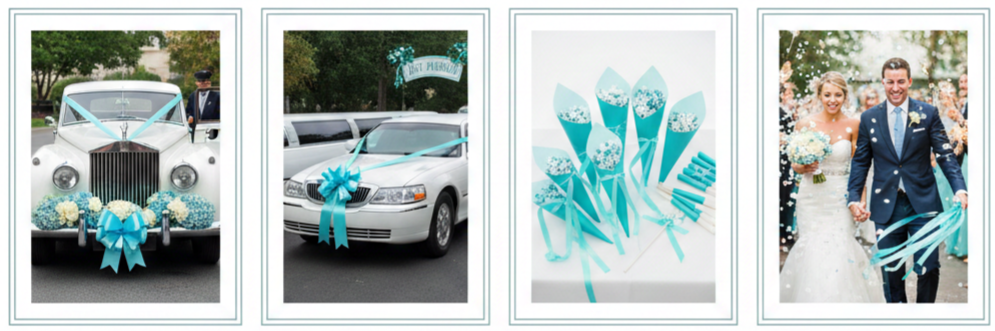 - Transportation style: A vintage car or horse-drawn carriage with Tiffany Blue bows or florals makes for a grand entrance or exit.