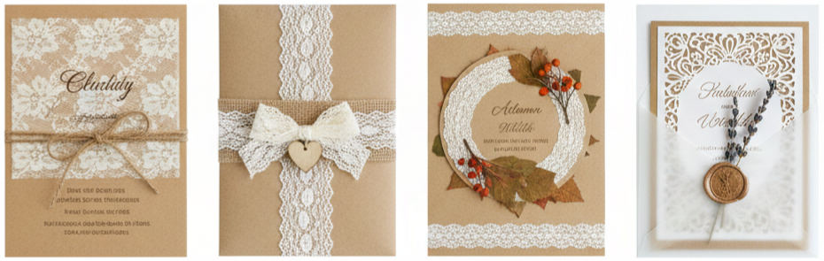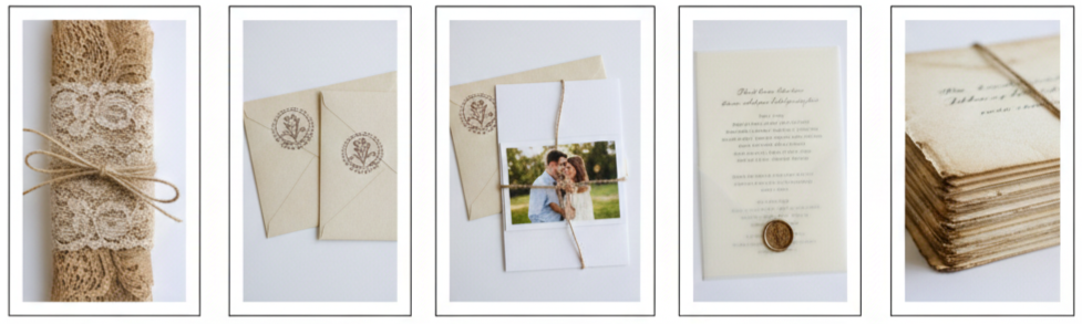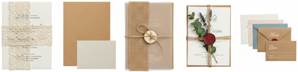 - Decorative Details: Wax seals, silk ribbons, or twine wrapped around the invitation suite elevate the look. Pressed flowers or greenery glued carefully onto envelopes add a soft, romantic touch.