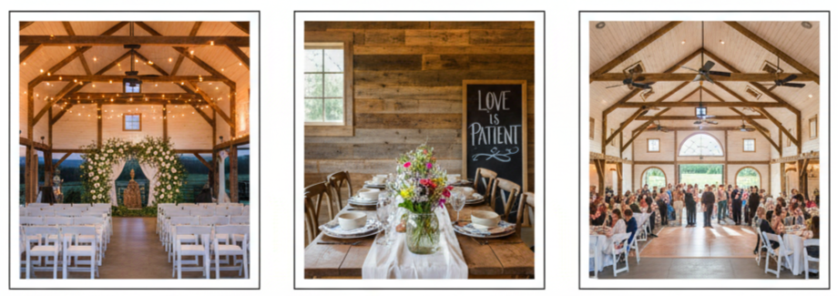 - Reception Layouts: Barn interiors, open tents, and outdoor dining areas allow for long tables, family-style meals, and relaxed seating arrangements.