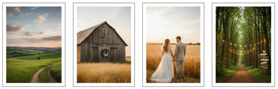 The countryside offers endless opportunities for meaningful photos. Natural light, open landscapes, and textured backdrops elevate every image.
