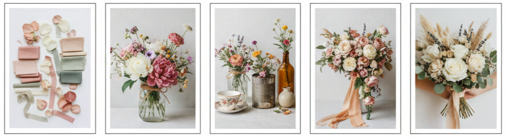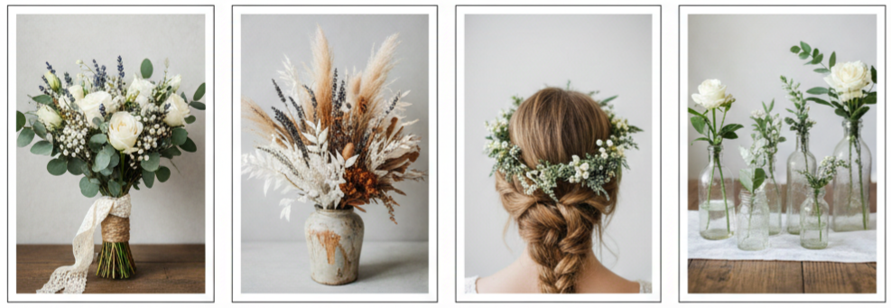 - Natural Florals: Wildflowers, greenery, sunflowers, eucalyptus, and seasonal blooms feel organic and effortless.