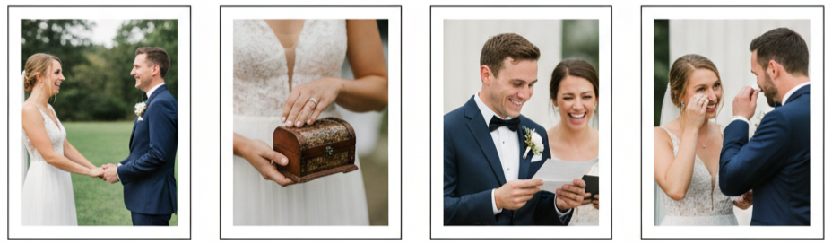These elements work together to create a ceremony that feels intentional, warm, and uniquely yours.