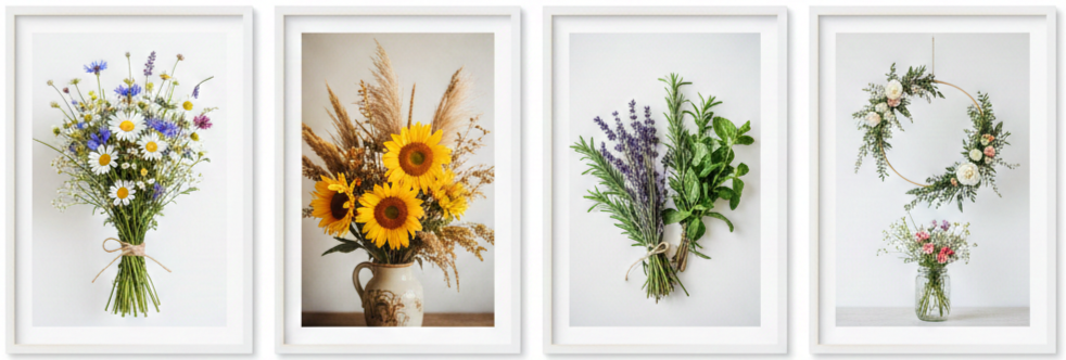 | Florals | Wild, Unstructured, Dried Or Seasonal Blooms |