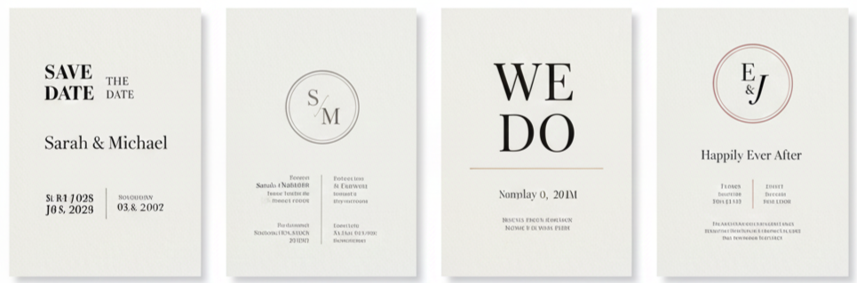 Clean layouts, neutral tones, and bold typography appeal to couples who prefer simplicity and elegance.