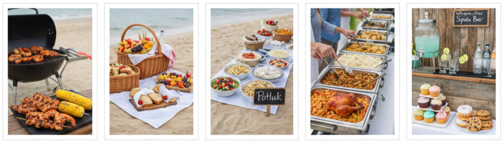 | Food & Drinks | BBQ, Picnic, Potluck Meals, or a Signature Drink Station |