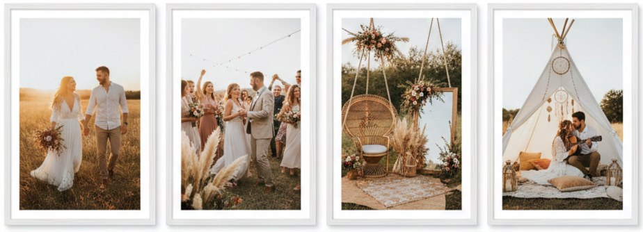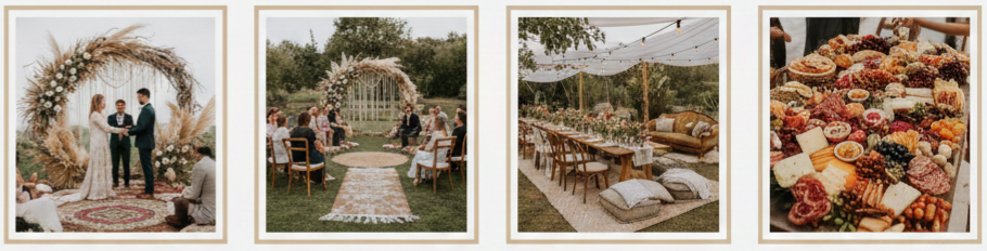 A Bohemian wedding doesn’t need a huge budget. In fact, it’s one of the most budget-friendly wedding styles when done thoughtfully.