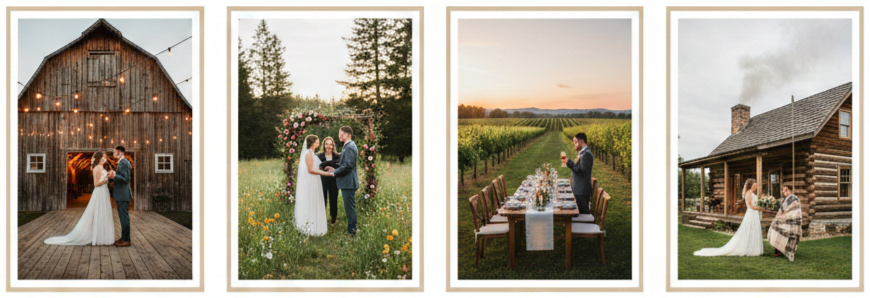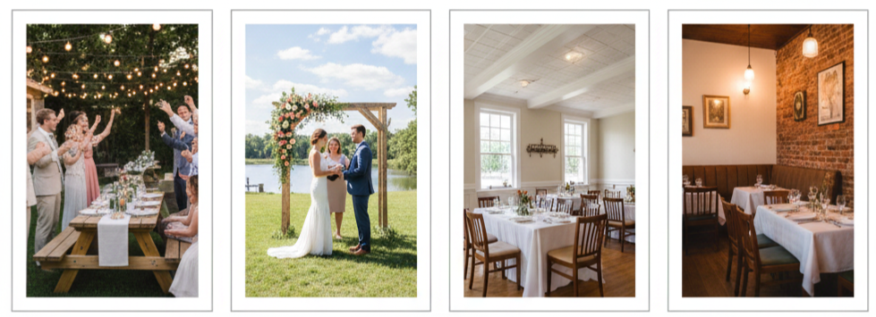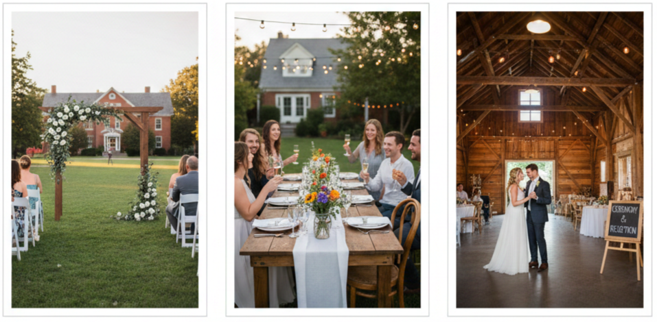 - Indoor options: Rustic barns, greenhouses, art studios, converted warehouses
