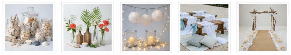 The goal is to add just enough décor to frame the setting while letting the beach remain the main visual feature.