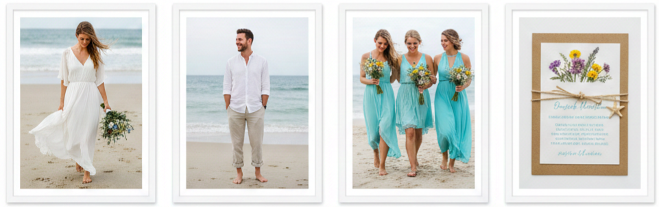 Beach weddings naturally call for lighter, more comfortable attire, which often costs less than formal wedding wear. This relaxed style also allows couples and guests to dress in ways that feel practical for sand and warm weather.