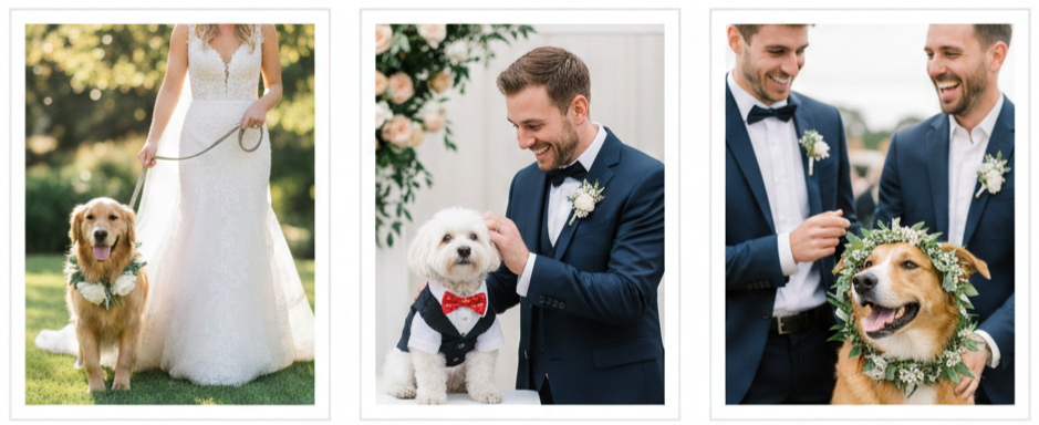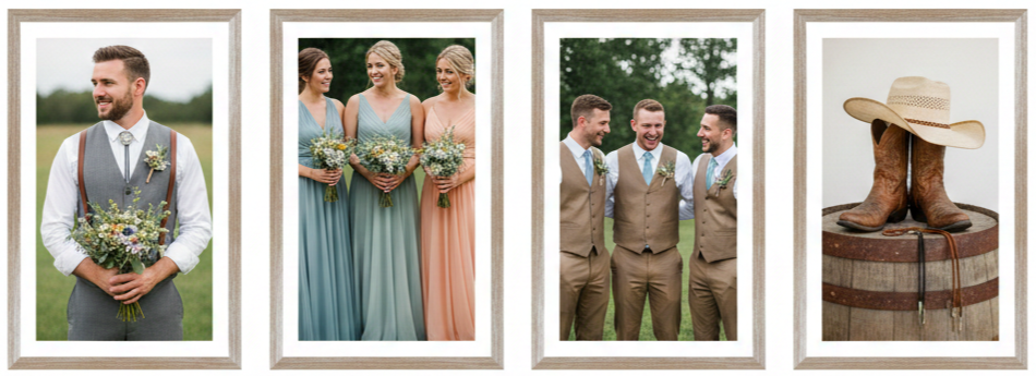 - Bridal party: Mix-and-match dresses in earthy tones, relaxed groomsmen looks with vests or open collars
