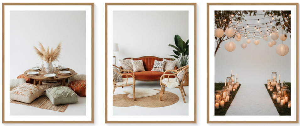 Absolutely. Boho pairs beautifully with rustic, vintage, desert, or even coastal themes. As long as the look stays natural and relaxed, it blends well with different aesthetics.