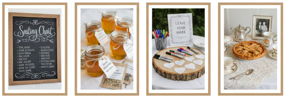 - Where to save: Thrift or borrow décor, go for DIY signage and favors, simplify the menu