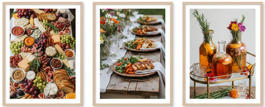- Dining style: Grazing tables, food trucks, shared platters, casual drinks