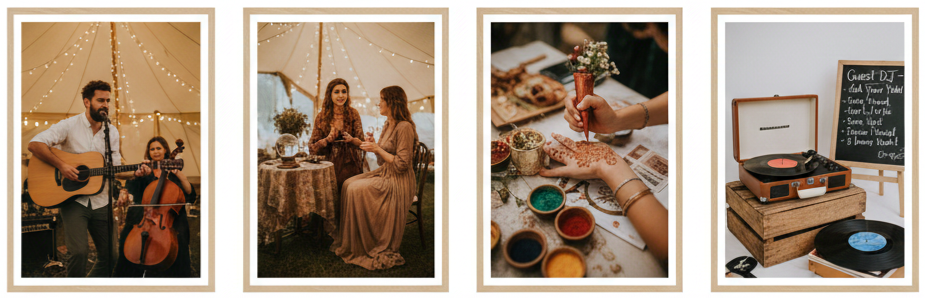 - Interactive Entertainment: Instead of formal entertainment, boho weddings favor personal experiences: