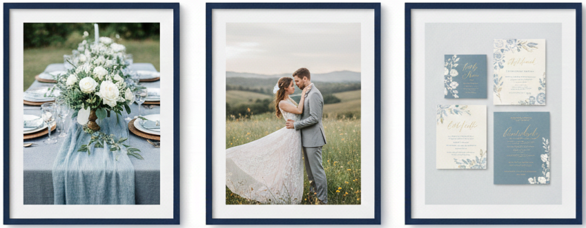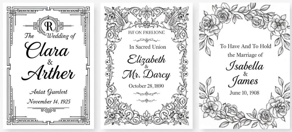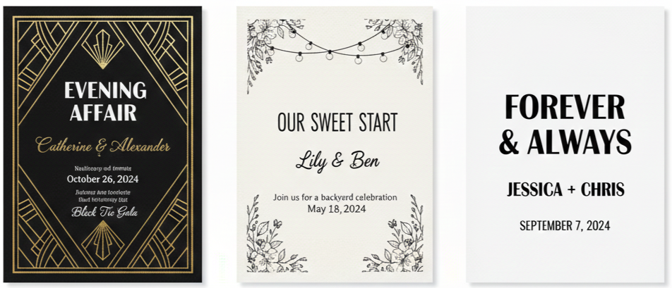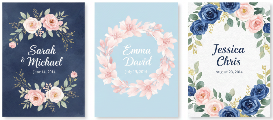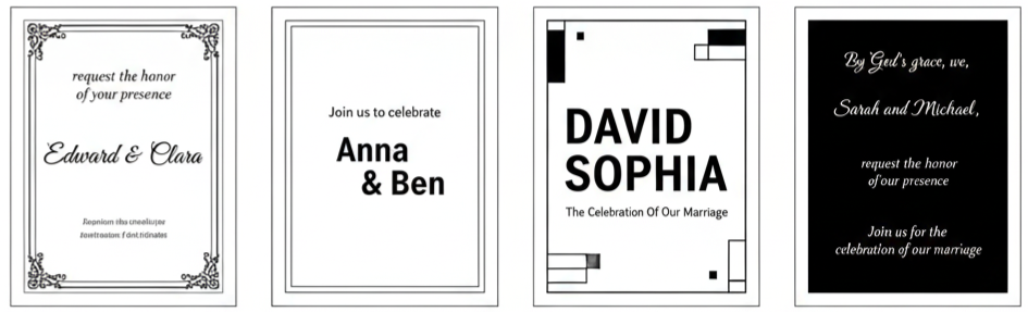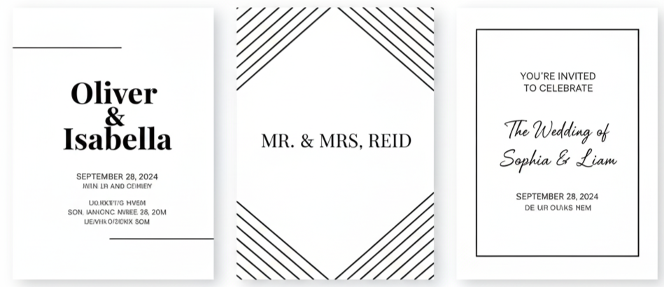 - Fonts And Colors That Fit The Mood: Typography usually includes flowing script fonts paired with clean, simple text for readability. Colors reflect the wedding palette, often using muted tones and soft contrasts rather than bold hues.