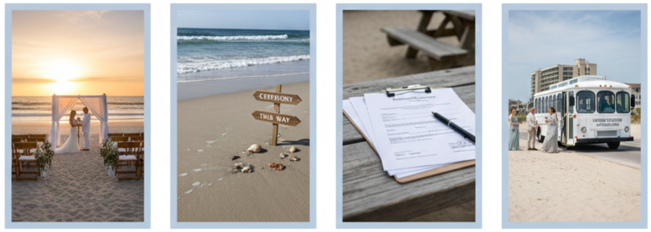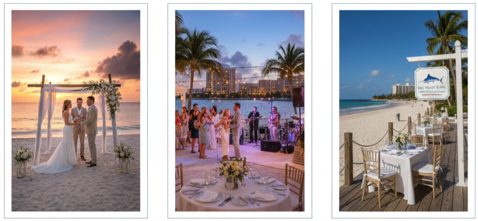 You can skip the weather on the main invite, but it’s smart to include tips on your website or detail card—like suggesting sunscreen, sandals, or a light jacket for evening breezes.