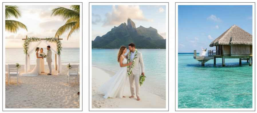Looking at real bridal inspiration makes choosing your style easier because you can see what actually works in beach conditions. These looks stayed beautiful, photographed well, and held up through wind, sun, and long celebrations.