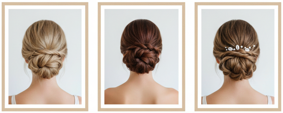 | Minimalist | Low twisted updo or sleek bob | Clean, simple, low-maintenance |