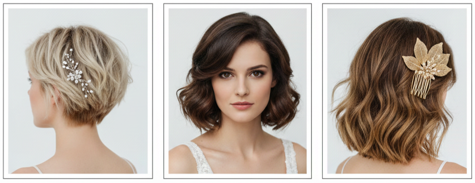 Short hair can look just as bridal as long hair, and in a beach setting, it can even feel easier and cooler. The secret is creating definition, adding texture, and using accessories that enhance the style without weighing it down.