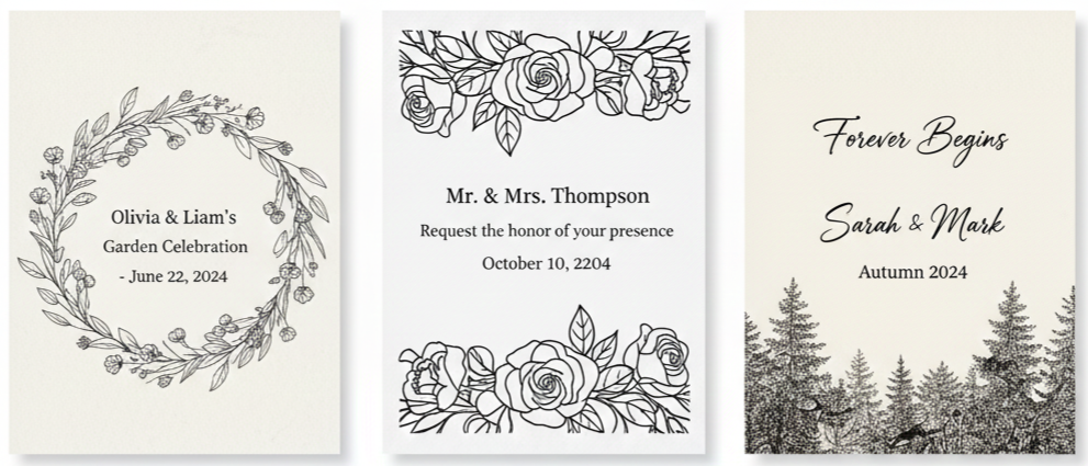 - Custom Illustrations: A sketch of your venue or meaningful scenery helps guests connect with the experience before the day arrives.