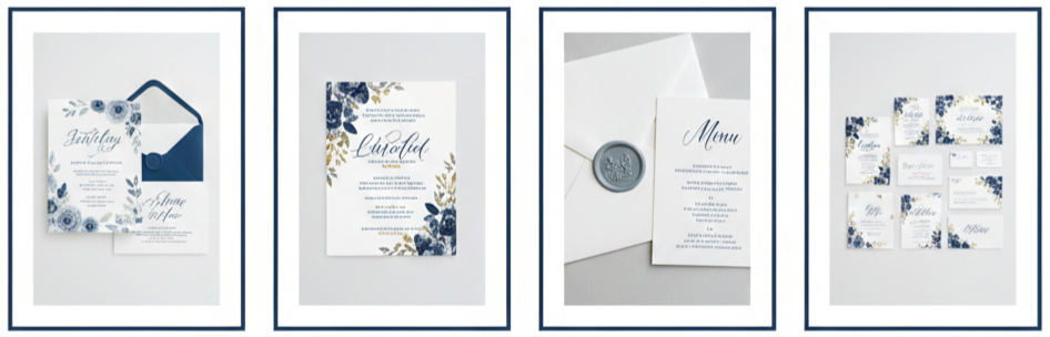 - Work with a designer: If you have a strong vision or want something no one else has, hiring a stationery designer is worth it. They’ll walk you through everything from color palettes to envelope liners. Some designers also offer matching websites and signage.