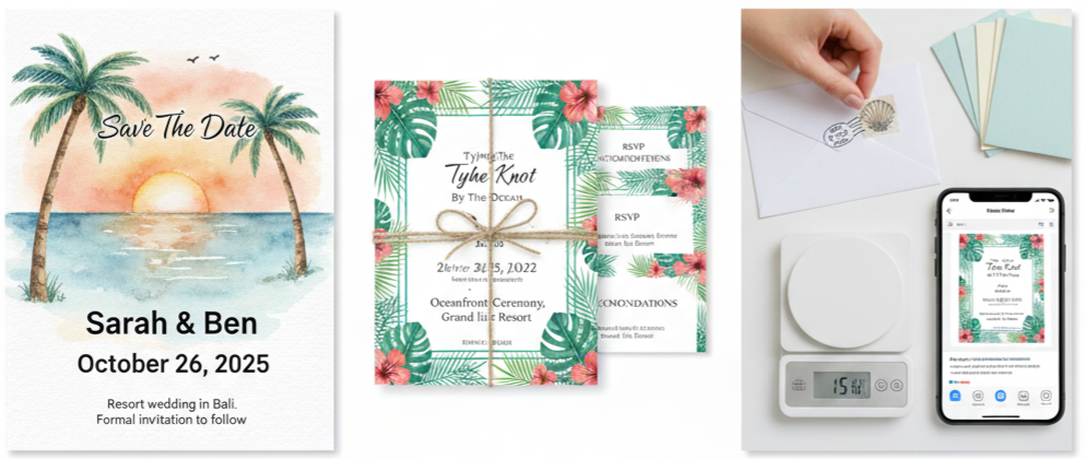 - Save-the-dates: Send these around 8 to 12 months before your big day, especially if your guests will be flying in or traveling to a resort. This gives them time to book flights and accommodations, request time off, and start planning their trip.