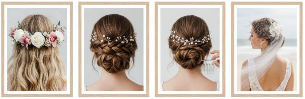 The right accessory can elevate your beach wedding hairstyle instantly. Whether you’re wearing your hair up, down, or braided, accessories help tie your look to your theme and bring that bridal “finish” that makes photos look complete. The best beach accessories feel light, secure, and comfortable.