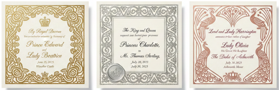 - Foil Stamping: Add accents in gold, rose gold, silver, or bronze to elevate the look.