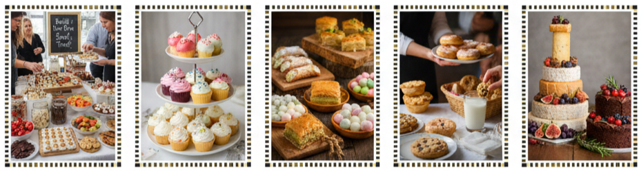 - Presentation Ideas: Use tiered trays, wooden boards, or mirrored stands. Accent with citrus slices, marigold petals, or gold foils.