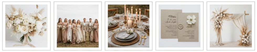 | Sage Green | Champagne | Soft & Minimal | Outdoor or boho themes |