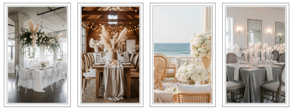 - Start with the Base Colors: Pick two or three neutral shades that complement your venue and season.