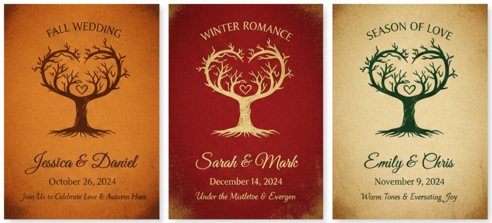 Once you choose this invitation, you can use it as the starting point for your wedding theme. The love tree design naturally inspires décor that feels earthy, romantic, and slightly vintage. You can extend this theme through your venue styling, wedding signage, table décor, and even your guest favors.