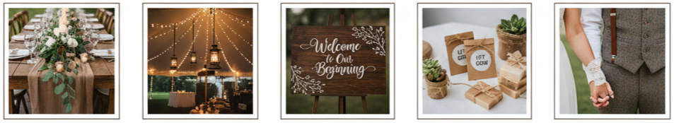 - Vintage Brown Palette: The color scheme uses rich browns, soft beige tones, and natural shades that feel cozy and nostalgic. These tones match perfectly with rustic venues, wooden tables, and outdoor settings.
